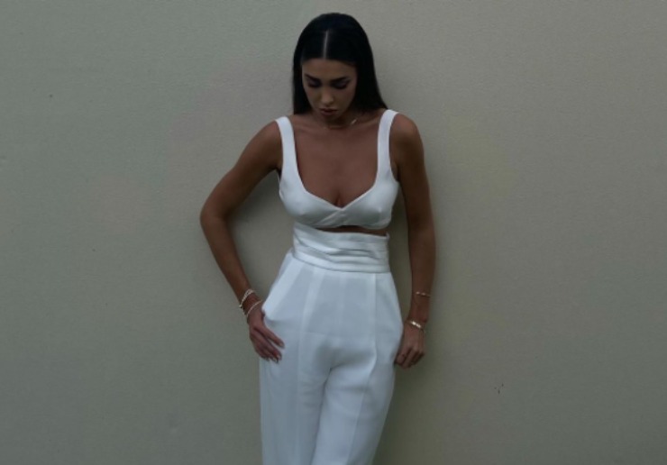 Tutta di bianco ma non come una sposa, la modella argentina è un incanto. Un look minimal indossato mentre Belen posa poggiandosi ad una parete. I capelli lisci e messi dietro le spalle, lasciano scoperta la sua scollatura che è enfatizzata dal top stesso.