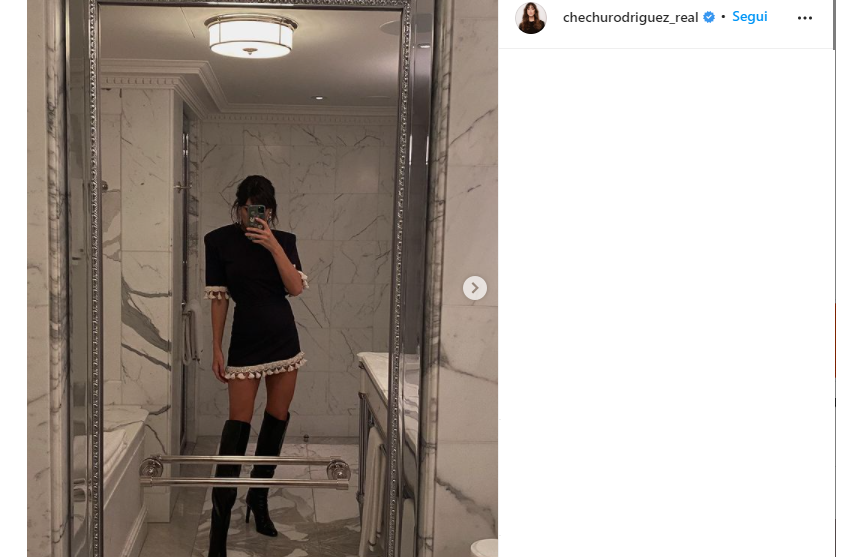Un vestitino nero reso particolare da alcuni pendenti di filo bianco sta facendo impazzire i fan. L’abito è cortissimo e lascia ben scoperte le gambe di Cecilia. Tanti i commenti positivi all’outfit ma c’è un follower che pare abbia scoperto il segreto della felicità della modella. “Io credo che sia la felicita che ti dona il tuo bel Nachito amandoti come solo Lui sa fare” ha scritto il fan che vede in lei un sogno ad occhi aperti.