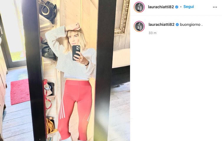 Laura Chiatti ha dato il buongiorno ai suoi fan, come di consueto, con uno splendido selfie allo specchio. Nuovo look e leggings attillanti