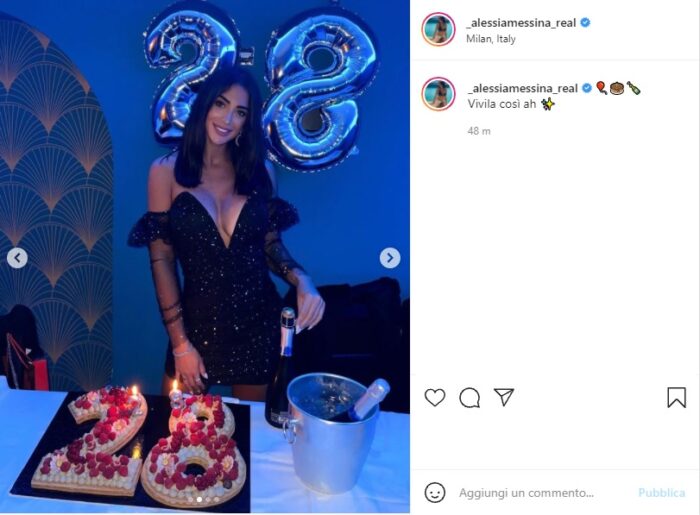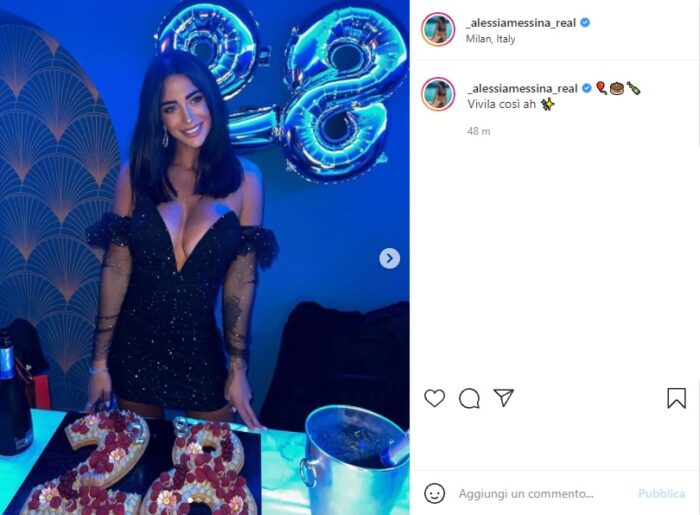 Alessia Messina ha pubblicato altre foto del suo compleanno. L’ex corteggiatrice non smette di incantare con quel vestito super scollato.