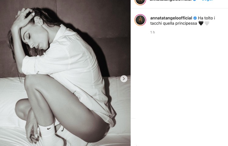 Nella giornata di ieri la donna era intervenuta direttamente da un furgone bianco, nella location del suo nuovo show ‘Scene da un matrimonio’, e aveva citato Battisti in didascalia. Questa volta invece ha scritto: “Ha tolto i tacchi quella principessa”. La showgirl ha dunque voluto riportare l’inizio della sua canzone ‘Anna zero’ come descrizione del suo ultimo post, di fatto autocitandosi.