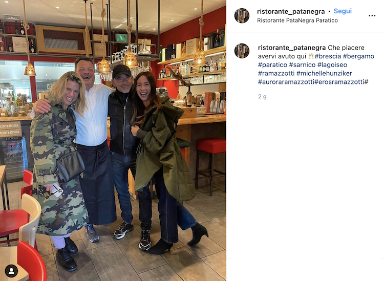 La foto condivisa sui social li ritrae sorridenti, felici e abbracciati. In loro compagnia c’è anche Paolo Benigni, lo chef del ristorante dove mamma, papà e figlia si sono regalati qualche ora insieme. Una volta resa pubblica, la foto ha davvero fatto il giro del web ed è riuscita a riportare i fan della coppia a quei magici anni ’90.