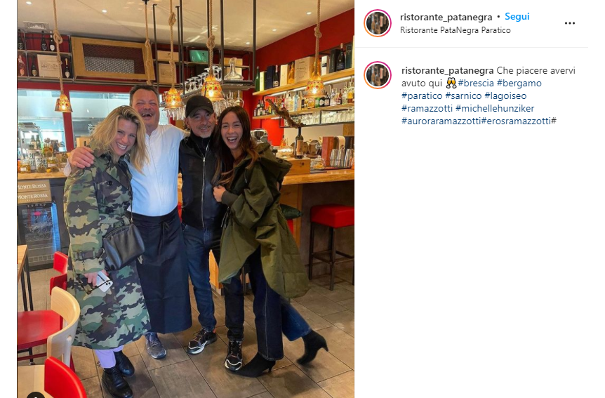 Un pranzo di famiglia in una location meravigliosa. Michelle ed Eros hanno trascorso una giornata insieme alla figlia Aurora in uno dei ristoranti frequentati già in passato. Per la reunion i tre hanno scelto un famoso ristorante di Brescia e proprio lo chef Paolo Benigni è stato felicissimi di rivederli.