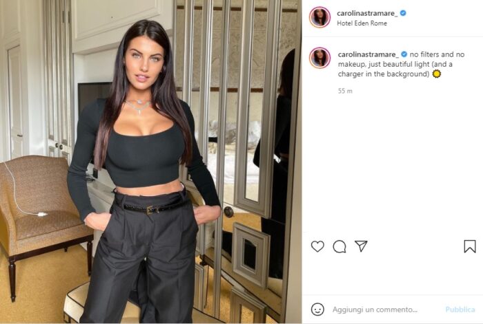 Carolina Stramare ha infiammato gli animi di tutti i suoi follower pubblicando una foto senza filtri, senza make up ma con un top strepitoso.