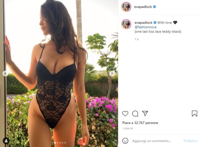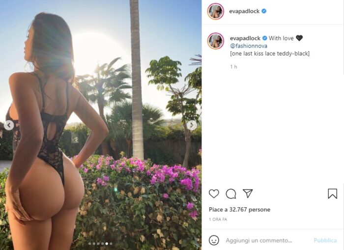 Come potete vedere dallo screenshot del suo post, riportato qui nell’articolo, ecco che Eva ha voluto provocare i suoi fan mettendosi di schiena e facendo vedere tutto il suo lato B. Il body indossato è pieno di trasparenze e copre decisamente poco del suo corpo. Dunque, il suo fondoschiena, ad esempio, è in bella vista per la gioia di moltissimi utenti.
