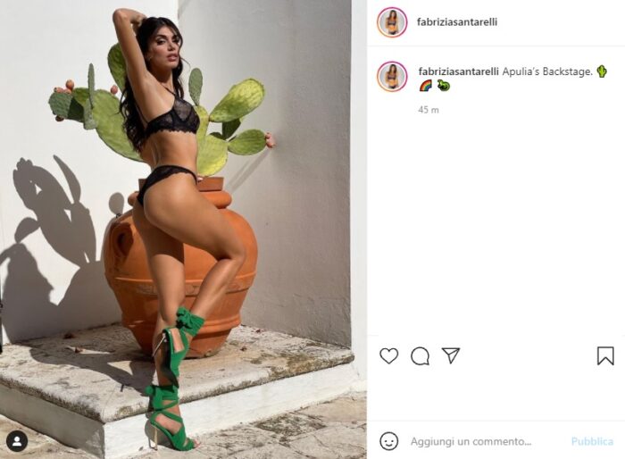 Fabrizia Santarelli ha posato in intimo nero sui social scatenando i commenti dei suoi fan. La modella pugliese ha conquistato tutti.
