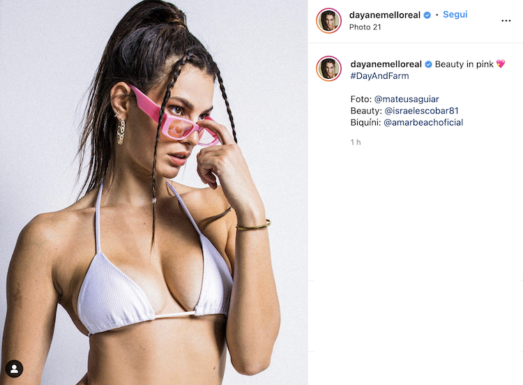 In questo momento, Dayane Mello è uno dei personaggi del jet set più discussi a causa degli eventi successi al reality brasiliano “A Fazenda” e delle di molestie sessuali mosse ai suoi danni da uno degli altri concorrenti, Nego Do Borel. La vicenda, contorta e mal gestita dalla redazione del programma, è venuta fuori grazie all’impegno dei fan.