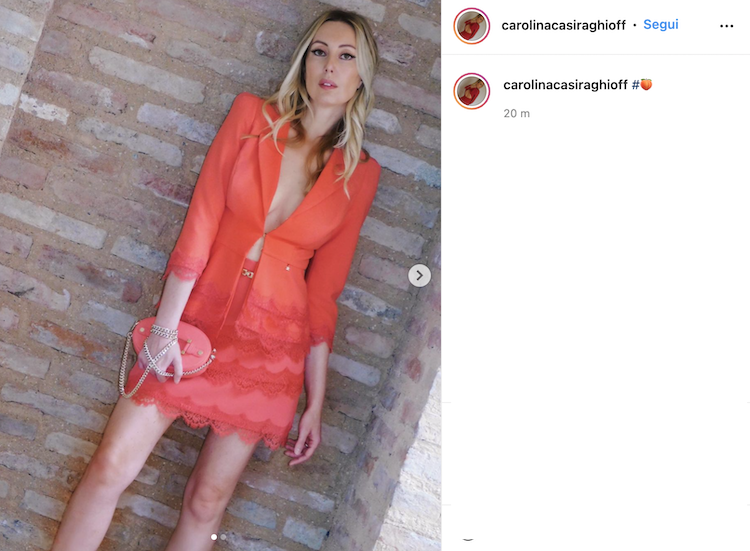 Qualche ora fa, Carolina ha deliziato i suoi follower con un post particolarmente bello. Eccola, all’aria aperta, con indosso un outfit color pesca che, in modo perfetto, abbraccia il suo corpo rendendogli tutta la giustizia che merita. La giacca con un solo bottone e la gonna in pizzo sono piaciuti tanto e i commenti degli utenti lo dimostrano.