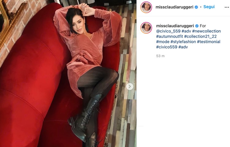 Affetto e complimenti a palate per Miss Claudia, che oggi ha già scaldato i cuori dei suoi seguaci con ben 4 scatti, in due post. Nel secondo, arrivato pochi minuti fa nella tarda mattinata di oggi 25 ottobre, la Ruggeri si è mostrata in tre foto una più bollente dell’altra. Simili nelle pose, bello il contrasto del rosso su rosso, visto che la showgirl si distende su un divano color rosso fuoco.