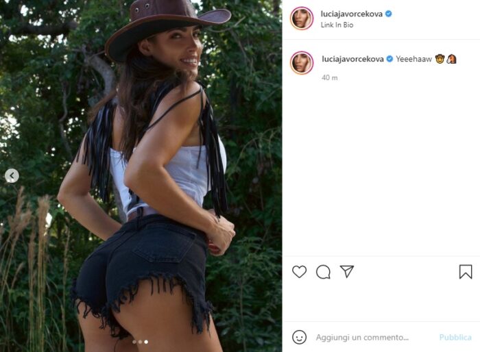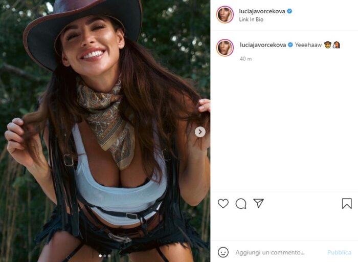 Lucia Javorcekova è apparsa sui social sfoggiando un look da cowgirl pazzesco. Curve in mostra, scollatura esplosiva. Ecco i dettagli.