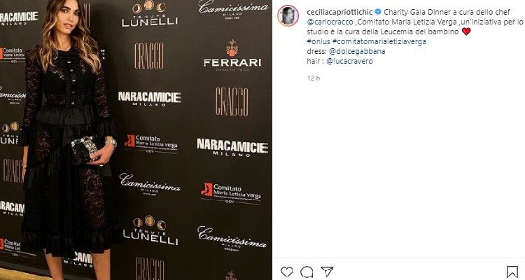 Con un look davvero seducente ed elegante Cecilia Capriotti ha ammaliato tutti. Per la cena di gala dal famoso chef Carlo Cracco ha osato parecchio con l’outfit, la foto postata sul suo profilo Instagram ha fatto impazzire i fan.