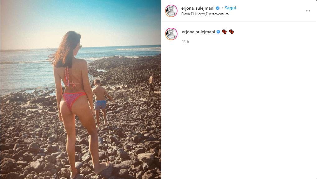 Un tuffo nell’estate insieme alla bellissima influencer ed ex moglie del calciatore Blerim Džemaili. Proprio come Erjona in tanti vorrebbero essere su una spiaggia a godersi il caldo sole ed il relax. Ma i più devono accontentarsi di sognare insieme a lei e l’influencer infatti non manca di scatenare le fantasie dei fan. Ma dove si trova?