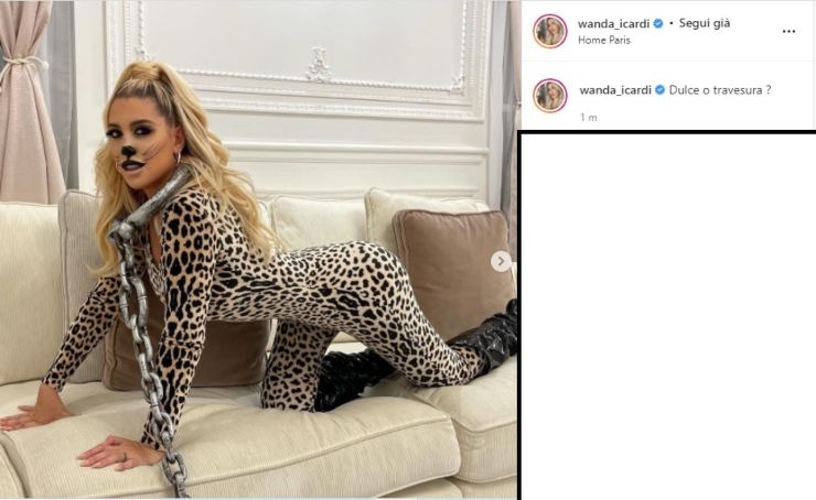 La bella argentina ha infatti voluto festeggiare al meglio Halloween. Ed il costume scelto mostra ancora una volta la parte più sensuale e provocante della stupenda show girl. Si è infatti travestita da felino, di tutto punto; una tutina molto aderente – fin troppo – da leopardo, con un paio di stivali neri poco sotto al ginocchio.