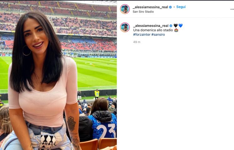 La solita esplosività, anche alla stadio per la Messina. Sempre esuberante ed elettrizzante sui social, la giovane modella siciliana questa mattina si è recata al Meazza per seguire la sua Inter. Lo scatto tra le gradinate della tribuna stampa di Alessia ha sicuramente catturato l’attenzione anche di qualche tifoso. Impressionate la bellezza della Messina, che ha sfoggiato un outfit sicuramente molto più casual del normale, ma non per questo meno sensuale.