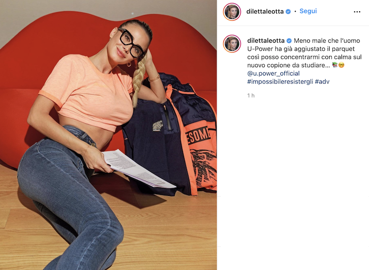Il suo ultimo contenuto è una scena di vita casalinga molto semplice ma d’effetto: eccola, sul pavimento e appoggiata al divano, intenta a leggere un nuovo copione per le sue prossime imprese lavorative. Il look è casual, ma, come sempre azzeccato. Top mozzafiato e occhiali da vista fanno Diletta ancora più bella.
