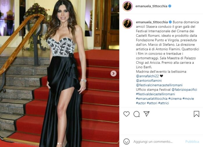 La bellissima Emanuela Tittocchia ha appena condiviso sui social un post in cui si è mostrata in tutta la sua bellezza ma ha anche dato molte informazioni sulla serata che la vedrà nelle vesti di conduttrice. Lei è un’attrice che ha fatto diverse soap, serie e film, ma anche molti spettacoli a teatro.