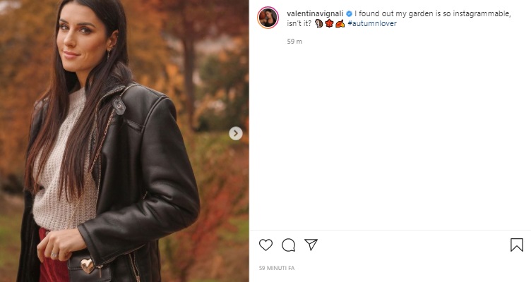 Nella didascalia ai suoi seguaci dice di aver scoperto che il suo giardino è davvero ‘instagrammabile’, chiedo poi loro se sono d’accordo. Immersa tra gli alberi e i colori dell’autunno in effetti è davvero splendida, anche il suo sguardo travolgente sta facendo impazzire tutti.