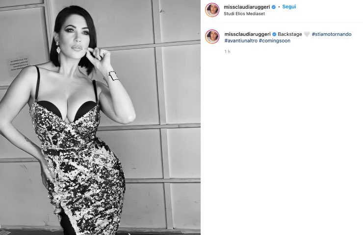 “Backstage”, commenta in didascalia, mentre tagga “stiamo tornando”. Un cuore bianco accanto alla descrizione e tanta voglia di rimettersi in gioco per la Ruggeri, che intanto ha fatti andare fuori di testa i fan con l’ultimo scatto. Meravigliosa, sensuale e come sempre elegante, Claudia ha sfoggiato ancora una volta una forma e una classe invidiabile.