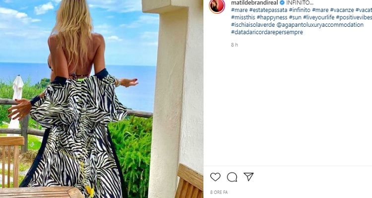 Girata di spalle Matilde Brandi non lascia vedere praticamente nulla, ai fan non è però sfuggito un dettaglio piccante. Quale? Si intravede parte del suo esplosivo décolleté, il bikini sembra contenerlo a stento. Un particolare hot che ha fatto girare la testa ai suoi tantissimi e affezionati follower. Nella didascalia ha scritto ‘Infinito’, anche la sua bellezza è infinita!