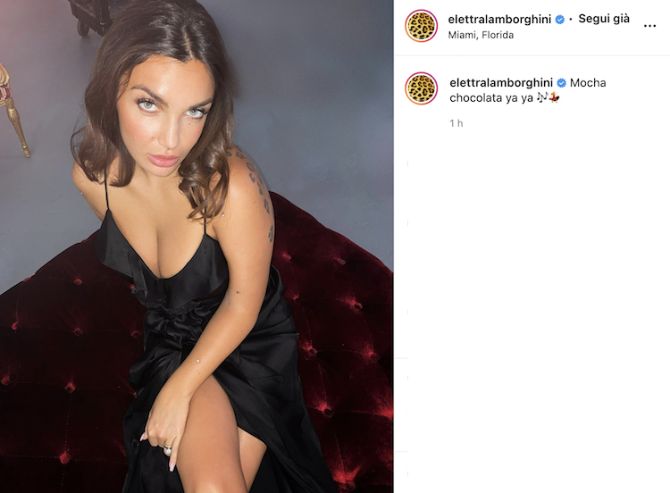 Elettra Lamborghini: sguardo sensuale, vestito corto e Instagram impazzisce