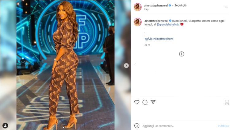 La splendida Ainett Stephens dopo essere uscita dalla casa del GF Vip continua a essere ospite nel programma: l’outfit per stasera è da urlo