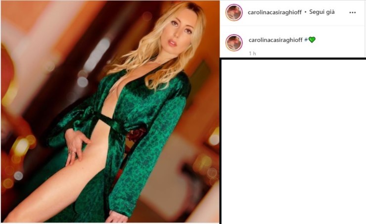 E’ però chiaramente il suo corpo la star di Instagram, quello che manda fuori di testa tutti i suoi fan. Nell’ultimo post si è lasciata immortalare in tutta la sua bellezza con solo una vestaglia verde e nulla più, peraltro anche aperta; nessun tipo di intimo, ma anzi, accenno di décolleté ed inguine in bella mostra per uno spettacolo davvero da infarto.