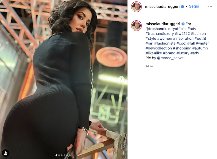 Dato il suo successo sul piccolo schermo, la Ruggeri ha un pubblico foltissimo anche sui social con 1,2 milioni di follower. Giorno dopo giorno, Claudia pubblica foto della sua vita e del suo lavoro, proprio come successo oggi. Degli scatti che la ritraggono a 360° con un outfit nero che ne esalta le curve come non mai. Bellissima!