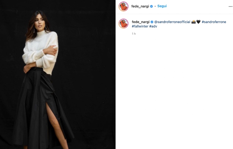 Federica Nargi ha illuminato la serata dei suoi fan con uno scatto elegante da togliere il fiato. La showgirl mostra le gambe con una gonna da sogno