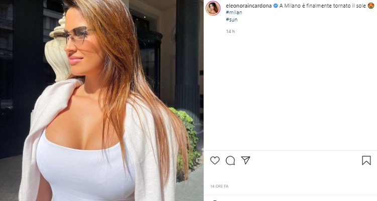 Nell’ultimo post il sole la bacia ed è incantevole, i suoi seguaci non possono però fare a meno di puntare gli occhi sulla scollatura. Questa è davvero profonda e mette in risalto il suo lato A da urlo, sembra che stia per esplodere. Eleonora Incardona è stupenda e fa sognare continuamente i suoi fan.