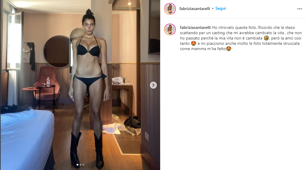 Schietta e divertente, l’ex Bona Sorte mora ha raccontato di aver ritrovato queste foto fatte per un vecchio provino. Il casting avrebbe potuto cambiarle la vita ma ciò non è accaduto. Fabrizia però non si scoraggia e ci ride su mostrandosi simpatica e conscia delle innumerevoli possibilità che l’attendono.