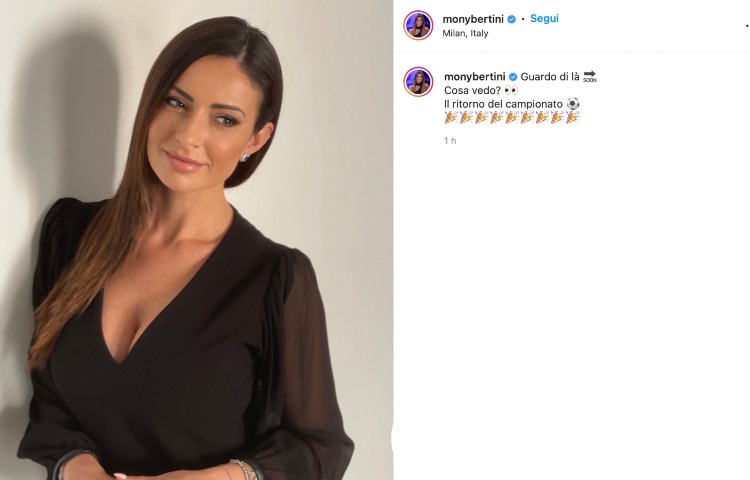 Il buongiorno di Monica Bertini, che si mostra tutta di nero per i suoi fan. Primo piano meraviglioso e uno sguardo al campionato: “Cosa vedo?”