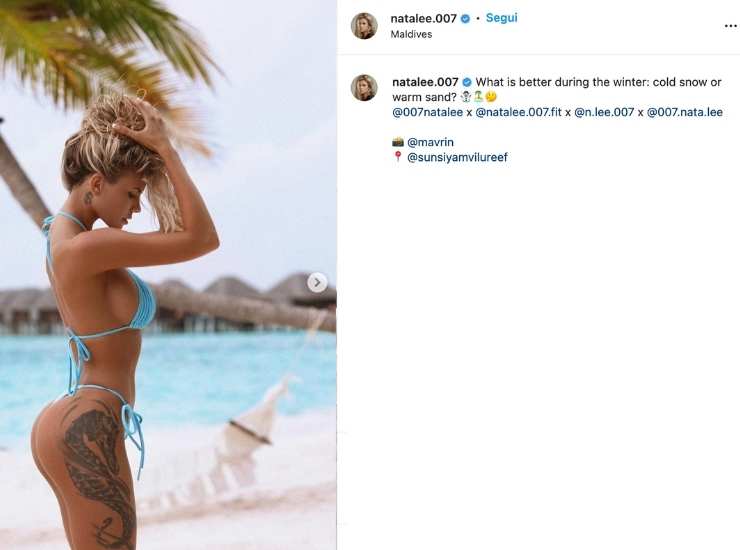 Natalie Lee, il bikini mette in evidenza il lato B. La modella di Instagram, direttamente dalle Maldive, condivide una serie di scatti direttamente dalla spiaggia. Che meraviglia!