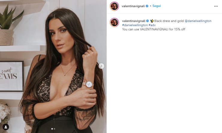 Un noto brand di orologi, ormai noto ai più, ha voluto proprio il volto di Valentina come testimonial della sua linea. Il Natale è alle porte e tra i tanti possibili regali, l’orologio è sempre una garanzia. La cestista lo mette ben in evidenza ricordando ai fan il possibile sconto grazie alla sua promozione.