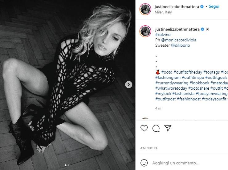 Spesso sul suo profilo Instagram pubblica scatti e pose super hot che mettono in evidenza le sue curve da sogno e la sua sensualità da vendere oltre alla sua straordinaria bellezza. Anche l’ultimo post pubblicato poco fa la ritrae davvero seducente e ammaliante in bianco e nero. Justine Mattera con addosso solo una maglia traforata che le lascia scoperte le sue gambe da urlo è pazzesca. Il sensuale vedo non vedo sta infiammando il web.