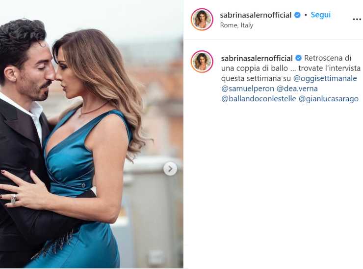 Sabrina ha voluto condividere sui social nel suo ultimo post Instagram proprio il servizio fotografico fatto per la rivista, dove è palpabile l’intesa che la lega a Peron. Sabrina è bellissima nei diversi outfit scelti per gli scatti. “Retroscena di una coppia di ballo … trovate l’intervista questa settimana su Oggi” ha scritto, dando appuntamento ai fans per scoprire tutti i dietro le quinte di una delle coppie di ballo a detta di tutti meglio assortite di questa edizione.