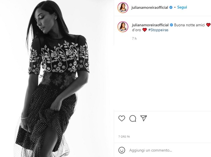La straordinaria modella stuzzica spesso i suoi seguaci con scatti e pose super sensuali e piccanti che oltre a mettere in evidenza la sua assurda bellezza esaltano anche le sue curve da sogno. Anche il post pubblicato ieri sera ha conquistato tutti, di profilo il suo viso è meraviglioso e il suo corpo è davvero stupendo. Mentre tiene il vestito con la mano questo sale e le scopre una gamba, Juliana Moreira è bella da svenire.