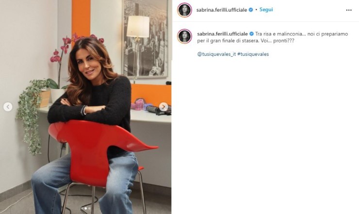 Con indosso un semplice jeans abbinato ad un cardigan nero, la Ferilli sorride ai follower ed il suo sguardo arriva dritto in camera. “Mancherai tantissimo” le scrivono i fan più affezionati. Lei sorride ed ammalia i più mentre si prepara alla puntata “tra risa e malinconia”.