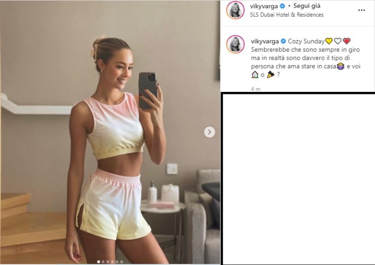 Di certo, però, in molti la apprezzano soprattutto per le immagini che posta sul suo profilo Instagram, da oltre 600mila follower ed in costante crescita. In attesa del matrimonio – con la proposta ufficiale arrivata l’anno scorso a Dubai – Viky incanta tutti con la sua bellezza e la sua sensualità.