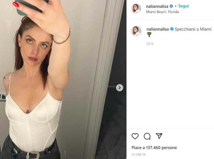 Selfie in canottiera a Miami: Annalisa fa impazzire i fans