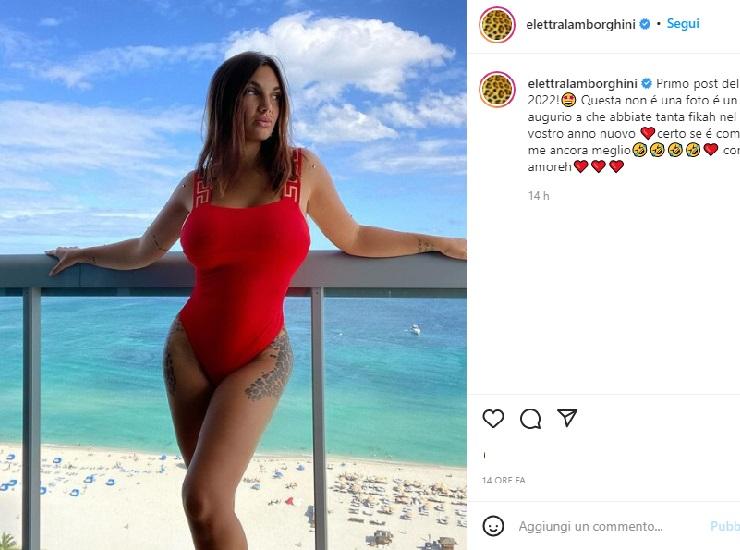 Elettra Lamborghini in costume è straordinaria, il primo post del 2022 fa impazzire i fan