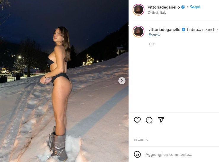 Sulla neve con addosso solo la lingerie ha spaccato Instagram, d’altronde di fronte a così tanta bellezza e sensualità per i suoi fan è impossibile resistere. Vittoria Deganello è bella da togliere il fiato e i suoi seguaci non perdono occasione per farglielo notare.