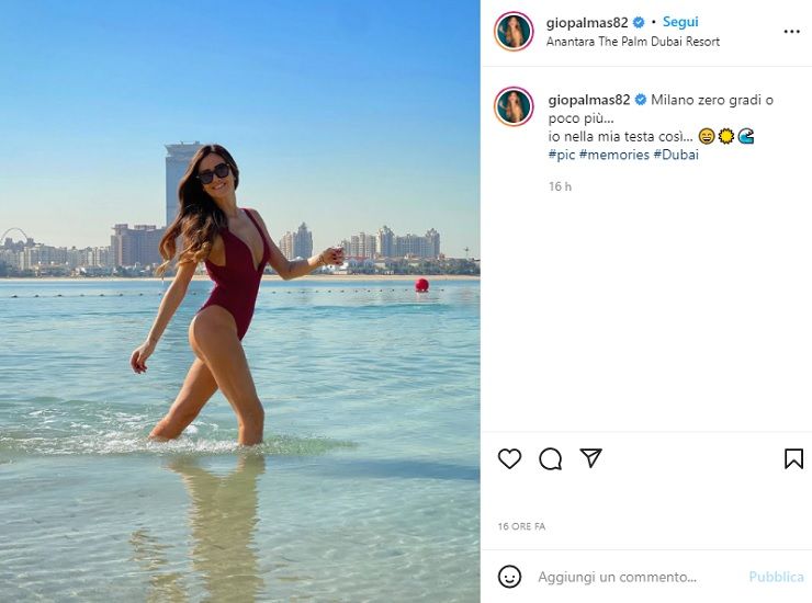 Da pochi giorni Giorgia Palmas è tornata a Milano dopo una bellissima vacanza a Dubai insieme alla sua splendida famiglia. Lì si è goduta relax, sole e mare, in più occasioni ha incantato i suoi tantissimi fan con la sua sensualità e la sua bellezza da urlo.