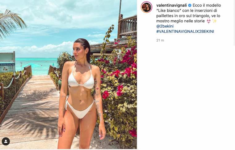 Un ottimo modo di unire l’utile al dilettevole. E quale miglior set per le nuove collezioni di costumi e bikini per una influencer, se non quello di un’isola delle indie. Anche stamattina dunque, la Vignali è intervenuta con un post risalente alla sua vacanza, nel quale si è mostrata in un bikini bianco da togliere il fiato. Alle spalle l’acqua cristallina del mare delle Caicos per Valentina, che in primo piano si prende la scena con il suo fisico statuario.