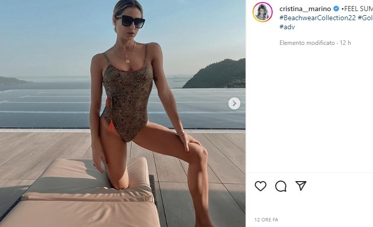 Cristina Marino indossa un costume intero attillatissimo che segna perfettamente le sue forme stupende, questo è molto sgambato e rischia di mostrare fin troppo, anche la scollatura è generosa ma non lascia vedere molto. La posa ha fatto sognare i suoi tantissimi fan, questi come sempre l’hanno riempita di apprezzamenti e like.