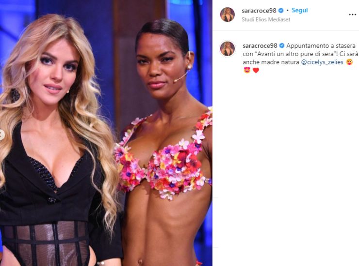 Intanto Sara non dimentica i suoi impegni lavorativi. Avanti un altro infatti si prepara ad andare in onda per una importante puntata serale, e la Croce sarà presente nelle sensuali vesti di Bonas. La modella ha voluto ricordare l’appuntamento ai suoi tanti fans sui social. “Appuntamento a stasera con “Avanti un altro pure di sera”! Ci sarà anche madre natura Cicelys Zelies” ha scritto.