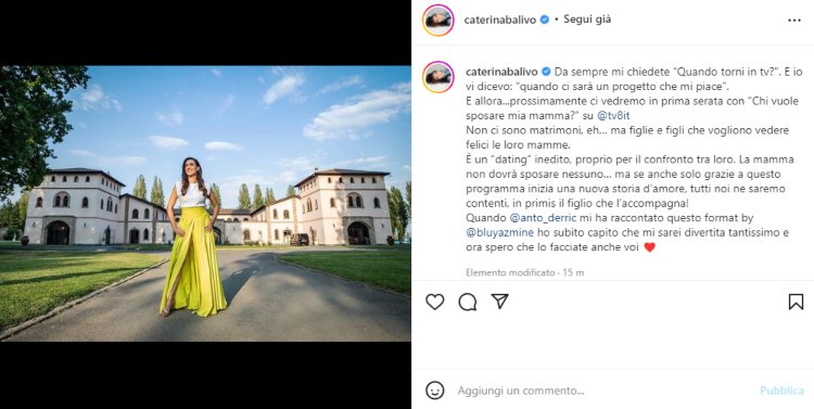 Questa mattina, attraverso il proprio profilo Instagram, la bella Caterina ha finalmente annunciato il proprio ritorno in televisione con un programma tutto suo. Il programma sarà ‘Chi vuole sposare mia mamma?’ e andrà in onda su Tv8 in prima serata. Come spiega lei stessa nel post, il programma sarà un ‘dating’, in cui le figlie cercano un compagno per le proprie mamme, senza che i due debbano per forza sposarsi. Dunque una nuova avventura che, come specificato sempre da lei nel post, le piace e l’ha conquistata. Nel post però, oltre al grande annuncio, c’è anche l’outfit che attira l’attenzione. Lo spacco fa cadere l’occhio lì.