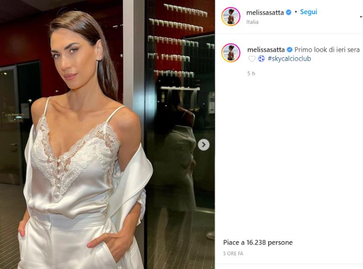 “Primo look di ieri sera” ha scritto, mostrando quale è stato il look scelto per l’ultima puntata di Sky calcio club. Per l’occasione Melissa ha scelto il bianco, un total white davvero rovente con il top in pizzo che lascia davvero poco all’immaginazione e mette in mostra la forma fisica davvero incredibile della showgirl, sempre davvero bellissima.