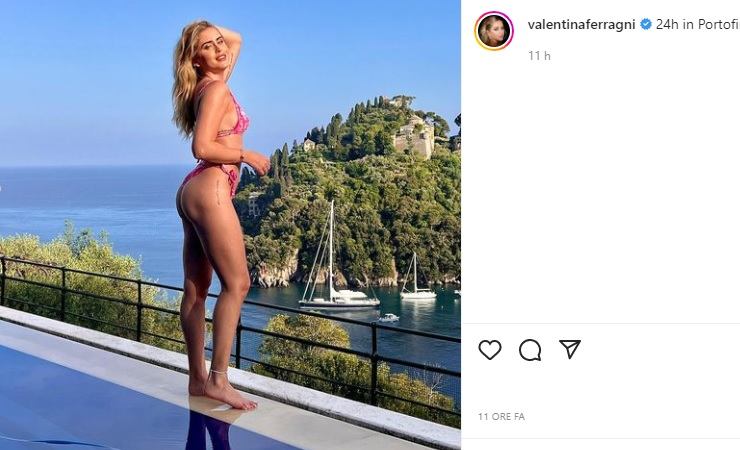 Anche l’ultimo post pubblicato nella serata di ieri ha spaccato Instagram, in posa a bordo piscina è bella da togliere il fiato. Valentina Ferragni indossa uno striminzito bikini che mette in evidenza le sue favolose curve e sfoggia uno splendido sorriso che ha ammaliato il web. Sempre più bella e sensuale anche questa volta ha steso praticamente tutti, lo scatto ha infatti conquistato tantissimi like e complimenti.