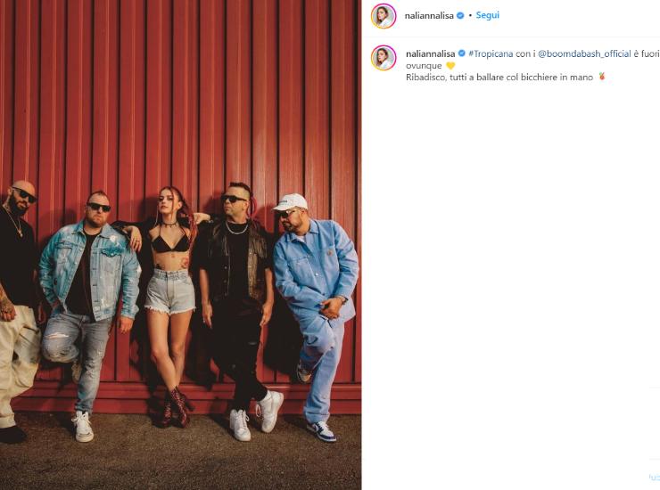 Annalisa ha infatti annunciato l’uscita del singolo dei Boomdabash “Tropicana”. Nali. come viene affettuosamente chiamata dai fans, ha partecipato al brano come voce femminile. La canzone, un brano dal sapore reggae sullo stile della band salentina perfetta per l’estate, promette già di essere una delle più cantate e ballate dei prossimi mesi. Annalisa, che è davvero seguitissima anche sul web, con oltre un milione di follower solo su Instagram, si è divertita a cantare il ritornello della canzone nelle sue storie, e ha ovviamente ricordato ai fans l’uscita del brano ricordandogli di non perdere l’importante appuntamento.