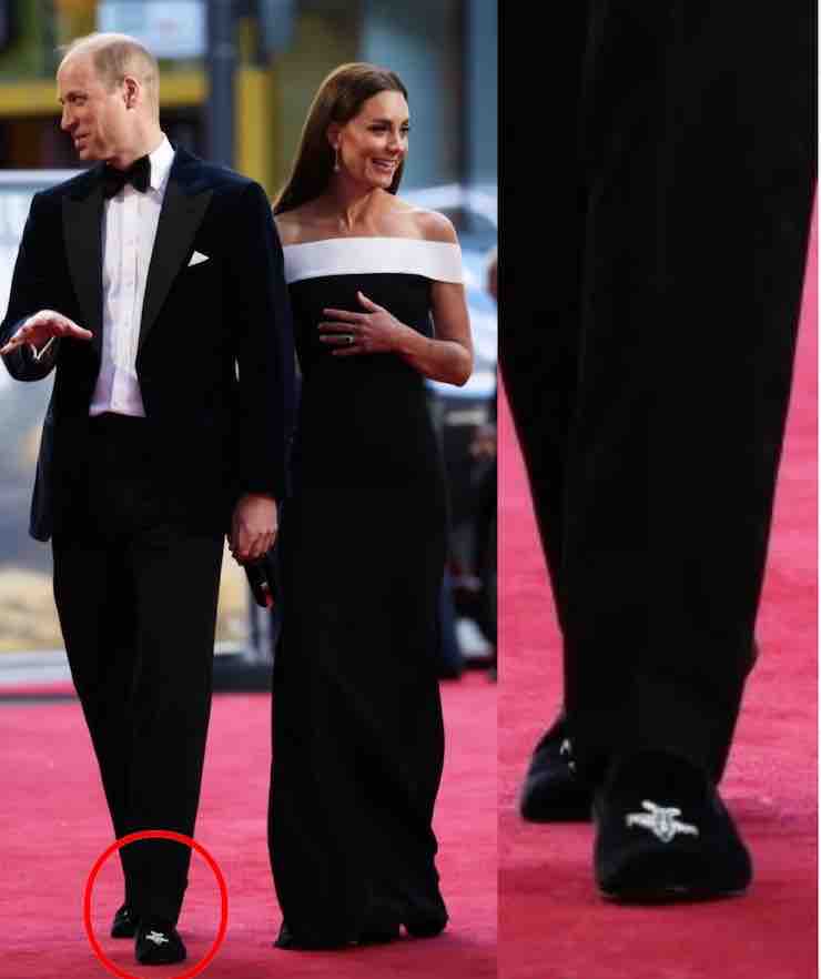 Il Principe si è infatti presentato elegantissimo come sempre, optando per un abito total black. Ha dunque indossato giacca, pantaloni (e relativo papillon) neri, che hanno fatto da contrasto con la sua deliziosa camicia bianca. Non è stato però questo che ha fatto chiacchierare tutto il mondo, bensì le sue scarpe. Le sue calzature in velluto sono state realizzate dal calzolaio Crockett & Jones (con sede a Northampton), e sono state un omaggio all’attesissimo film.